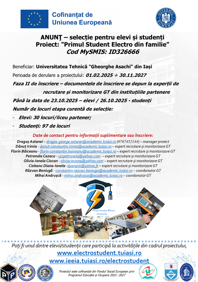 Site web proiect:  www.electrostudent.tuiasi.ro